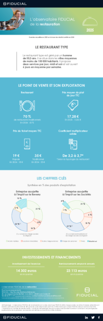 L’Observatoire Fiducial de la restauration est un document que Fiducial édite chaque année. Les ratios d’analyse présentés sont établis à partir des résultats 2024 de 400 points de vente sélectionnés parmi les 10 000 clients que compte Fiducial dans ce secteur d’activité. L’importance du nombre de dossiers traités, l’unicité de méthodologie assurent le sérieux des données fournies et constituent une photographie représentative de la profession.