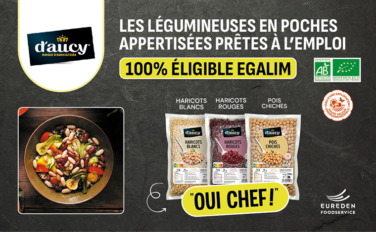 Pour accompagner les acteurs de la restauration collective dans l’atteinte des objectifs de la loi EGAlim, Eureden Foodservice enrichit son offre avec le lancement d’un nouveau format : la poche appertisée sans jus de 2,5 kg, disponible dès maintenant sur trois légumineuses incontournables : haricots blancs, haricots rouges et pois chiches.