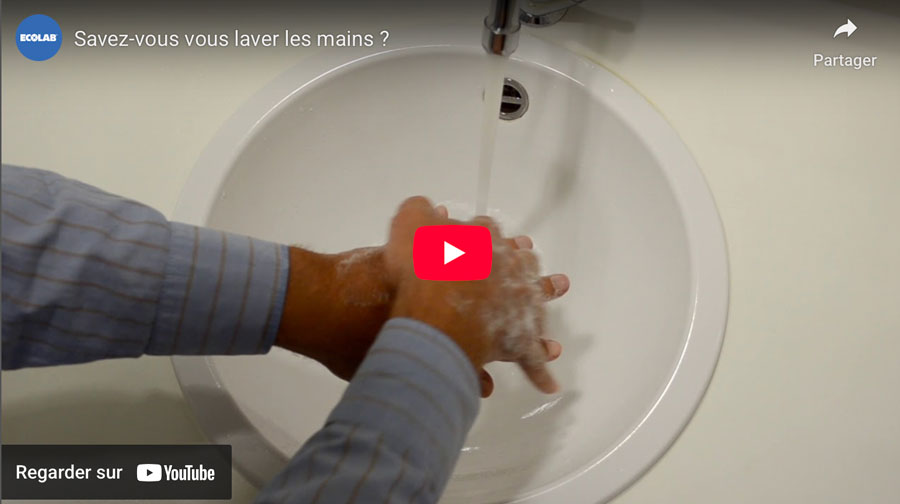 Pour vous aider à vous en assurer, Ecolab met à votre disposition une courte vidéo de formation au lavage des mains et un poster gratuit à télécharger pour faciliter les rappels. N'hésitez pas à l'afficher près de vos éviers !