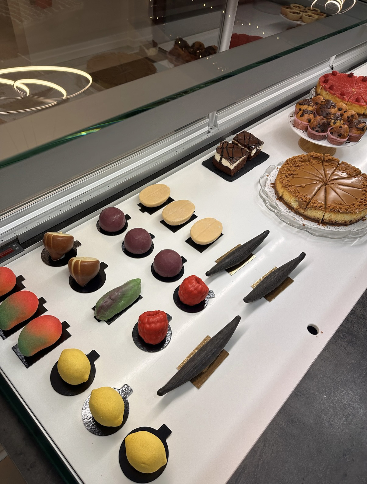 « Pour le salon de thé, nous proposons des desserts en trompe-l’œil car là aussi il y avait de la demande ». Généralement, la forme reprend l’ingrédient phare de la recette, par exemple le fruit. Les produits frais sont sélectionnés sur le marché et les partenariats pour les autres matières premières se mettent en place, l’objectif étant de travailler en bio et en local.
