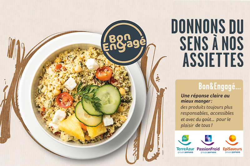 Lancée en 2021, Bon&Engagé incarne la réponse du groupe aux attentes croissantes des professionnels de la restauration collective : mieux manger, mieux produire, mieux informer. Présente dans les gammes fruits et légumes (TerreAzur), produits carnés et de la mer (PassionFroid) et épicerie (EpiSaveurs), la marque s’appuie sur un cahier des charges strict avec notamment : priorité à l’origine française et aux filières locales, réduction des additifs et des produits ultratransformés, amélioration de la qualité nutritionnelle des recettes, et recours à la pêche durable et à l’élevage responsable. Désormais, les produits Bon&Engagé notés entre A et C pourront être intégrés dans les approvisionnements EGAlim, au titre de la réduction des externalités environnementales.