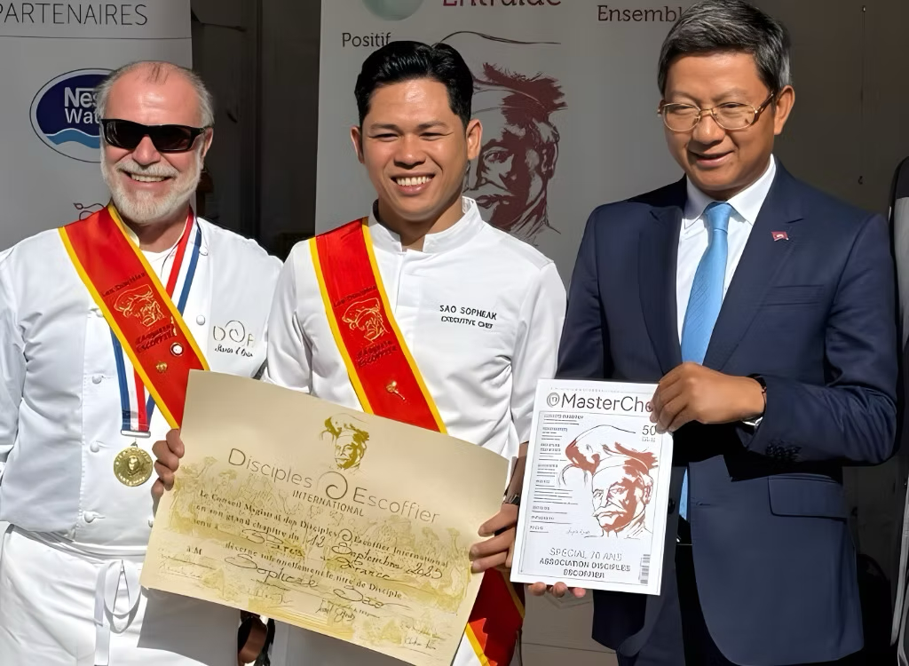 Sopheak Sao, chef exécutif du restaurant Topaz du groupe Thalias Hospitality (Cambodge) a remporté la première Coupe du Monde des chefs privés organisée en France (11-14 septembre). En transformant le prahok (pâte de poisson fermentée) en sauce gastronomique et en sublimant le krueng khmer (mélange d’épices) dans des créations inédites, Sopheak Sao a puisé dans son héritage cambodgien pour convaincre un jury réputé intransigeant. Soutenu par l’École d’hôtellerie et de tourisme Paul Dubrule à Siem Reap et par l’ambassade du Cambodge en France, Sopheak Sao incarne cette nouvelle génération de chefs qui fait rayonner la cuisine khmère contemporaine sur la scène mondiale.