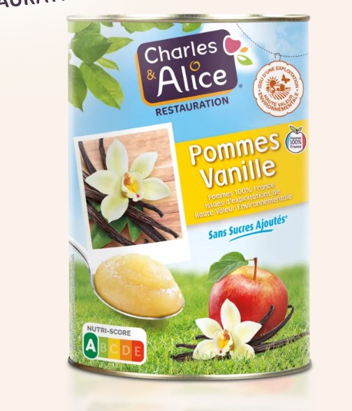 Connue de 9 chefs sur 10, rien n’arrête plus le spécialiste du dessert fruitier Charles & Alice. La marque, qui souffle ses 15 bougies et réalise 222 M€ de chiffre d'affaires dont 50 % en restauration hors domicile, enrichit ce premier semestre ses gammes HVE et bio avec de nouvelles références toutes éligibles Egalim. Deux nouvelles coupelles HVE rejoignent ainsi la gamme. Au menu : une Pêches depuis janvier, disponible en version sans sucres ajoutés et allégée en sucres, et une Pommes-Kiwis sans sucres ajoutés dès ce mois-ci. « Le kiwi est un fruit très apprécié, notamment en restauration scolaire. Nous avons réalisé d’ailleurs réalisé un produit sans akènes pour donner davantage de douceur aux plus jeunes consommateurs », Raquel Martins, responsable marketing et RSE de la marque. La gamme HVE compte désormais 22 références, toutes élaborées à partir de pommes françaises récoltées à moins de 200 km des ateliers de la Drôme et du Vaucluse.