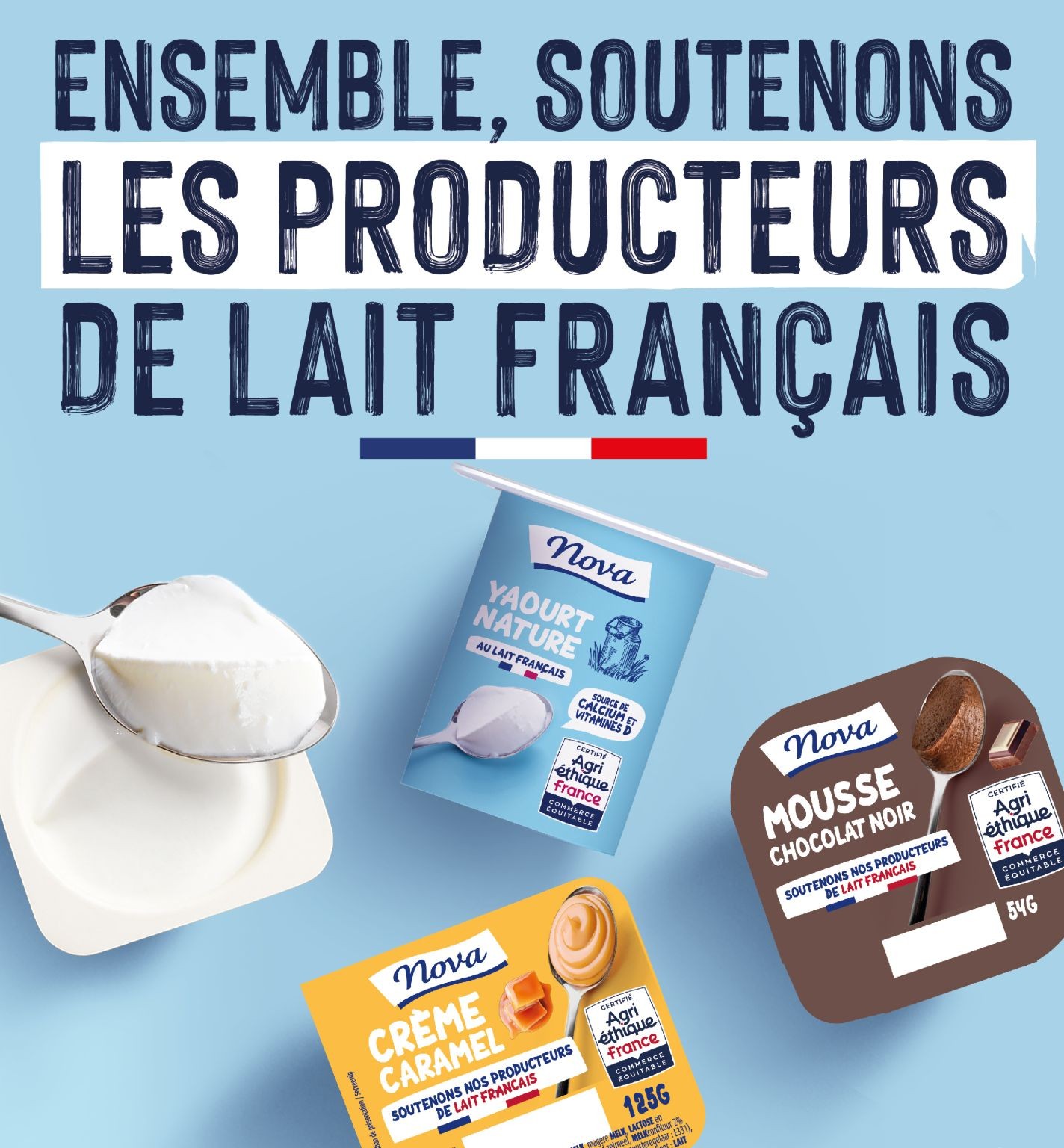 Au total, la marque proposera la plus large offre de yaourts et desserts Egalim sur le marché, soit 54 références (33 Agri-Ethique France et 21 Bio). Au menu Agri-Ethique : yaourts (5 déclinaisons), yaourts à boire (4 déclinaisons), Novly (5 déclinaisons), riz au lait (2 déclinaisons), liégeois (3 déclinaisons), mousse (4 déclinaisons), flan (2 déclinaisons), crème renversée, crème dessert (5 déclinaisons), semoule au lait (3 déclinaisons), œuf au lait.