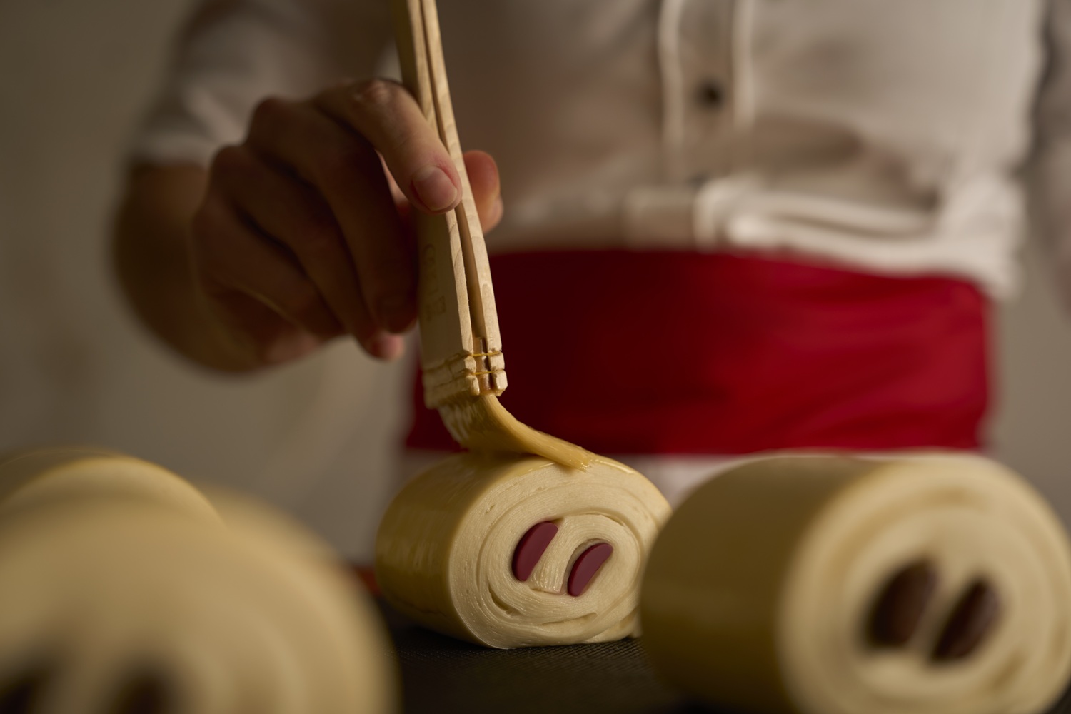 Autre bel outil créatif : la nouvelle gamme Viennoisery, pensée pour réaliser des viennoiseries élégantes et créatives. Avec deux bâtons inédits, elle ouvre un champ des possibles pour imaginer des pièces différenciantes. Outre le bâton chocolat noir, on y trouve ainsi le Bâton petits pains Inspiration Framboise avec ses notes confiturées, acidulées et légèrement sucrées. Mais également le Bâton petits pains façon Gianduja avec ses notes de noisettes grillées, cacaotées et lactées. Une texture fondante et onctueuse, inspirée du gianduja, et pensée pour rester stable en cuisson.