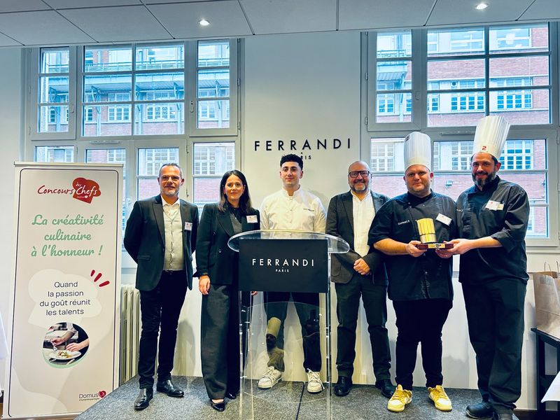 Pour cette édition anniversaire, DomusVi a réuni, à l’Ecole Ferrandi, à Paris treize chefs finalistes, issus de demi-finales régionales organisées au printemps. Chaque candidat devait réaliser un menu complet — entrée, plat et dessert — en intégrant un ingrédient d’épicerie emblématique de sa région, à partir d’un panier surprise.