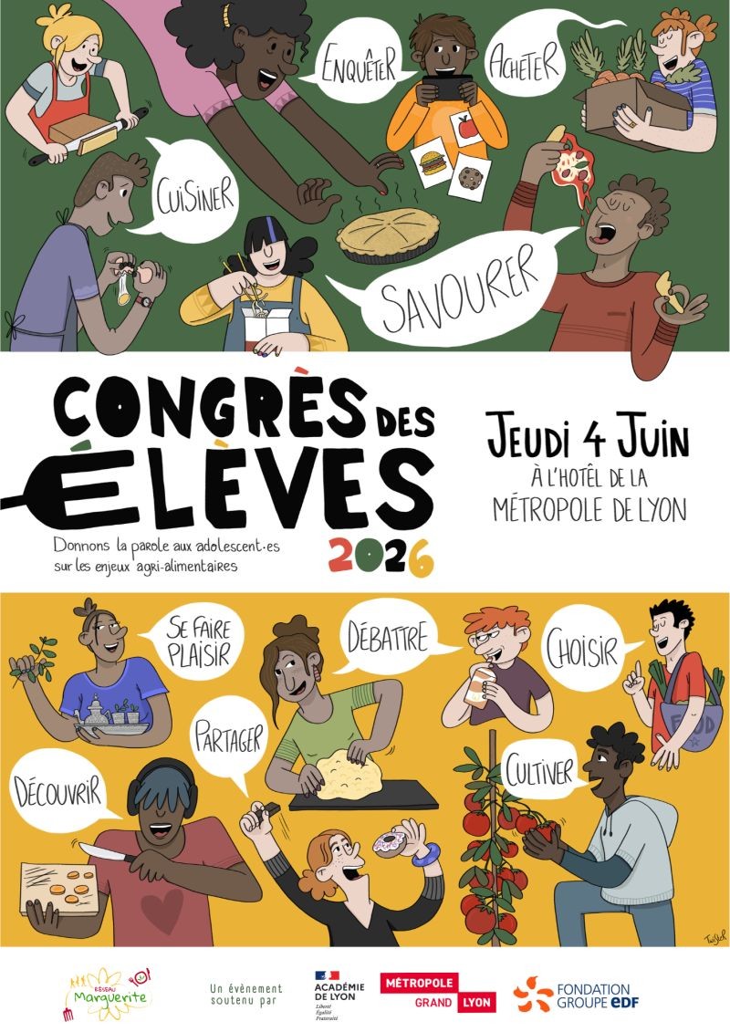 Le 4 juin à Lyon, 140 collégiens et lycéens débattront d'alimentation et d'agriculture lors de la 8e édition du Congrès des Élèves, organisé dans le cadre du projet Marguerite. Au programme : conférence, expositions et jeu de rôle sur les cantines scolaires.