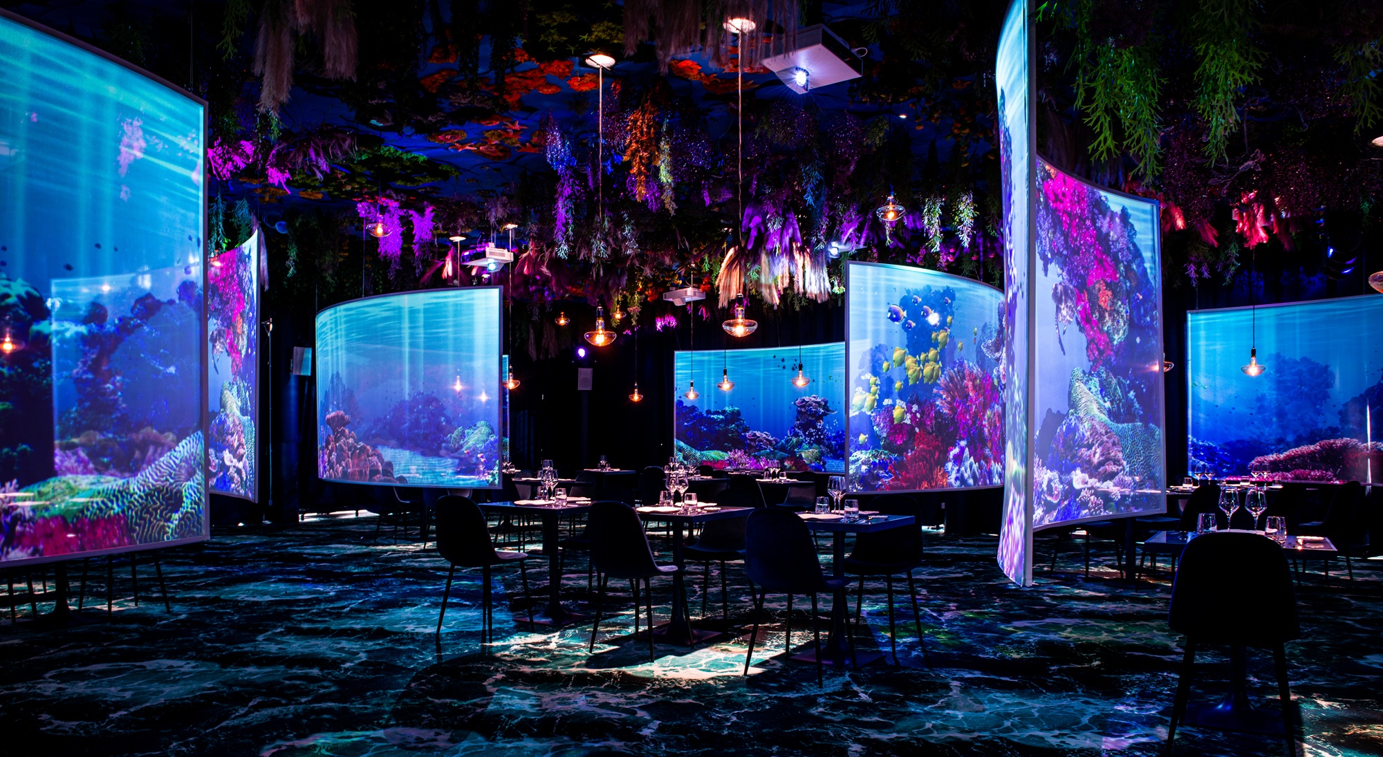 Ce restaurant Under The Sea, deuxième du nom et fidèle au vaisseau amiral parisien du groupe, a ainsi accosté le 13 février dans la ZAC Odysseum, au sein du centre commercial avec une surface de 700 m2. Pour cette ouverture, Ephemera Group continue de conjuguer expériences culinaire et sensorielle. Depuis sa création, le groupe collabore ainsi avec Henriette & Compagnie, habituée à métamorphoser plateaux de cinéma et espaces insolites, pour la conception des décors. Pour les effets visuels Studio C14 est à la manœuvre, et pour les effets sonores c’est Studio 31DB.