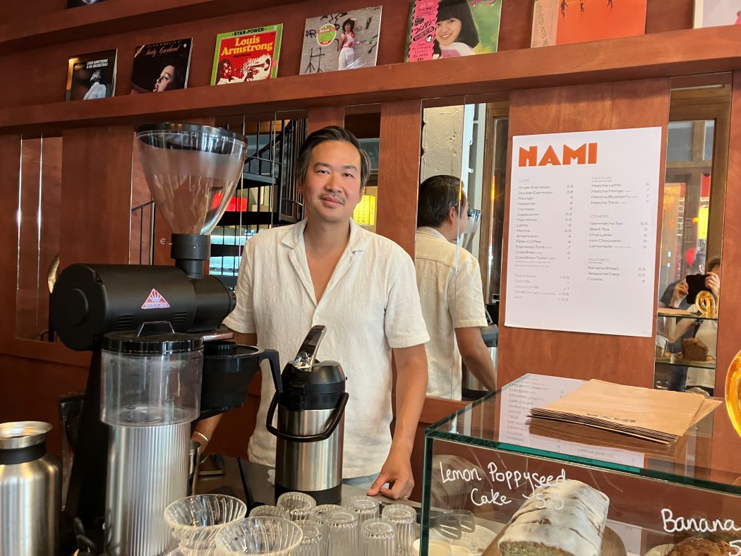 Dans un décor épuré « qui rappelle le Japon des années 80-90, mais sans cliché », les clients (80 % d’étrangers) viennent déguster des cafés de spécialité sourcés chez KB Coffee Roasters ou chez des torréfacteurs du nord de l’Europe (Amoc, Rumbaba), et dont les extractions sont réalisées sur une machine d’excellence (La Marzocco) par des baristas triés sur le volet. Nami propose égalent thé matcha (personnalisable avec lait, sirop ou purées de fruits), thé noir (sourcé chez Kodama), citronnade ou infusion maison.