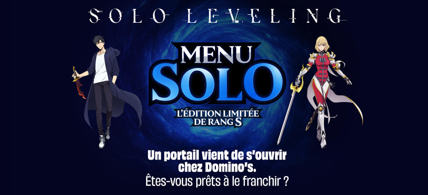 Pour séduire les fans d'animation japonaise, Domino's Pizza s'est associé avec Solo Leveling Animation Partners, studio à l'origine de l'un des animes les plus suivis du moment. À cette occasion, l'enseigne propose le Menu Solo en édition limitée, disponible dans l'ensemble des restaurants de l'enseigne du 22 avril au 18 mai 2026.